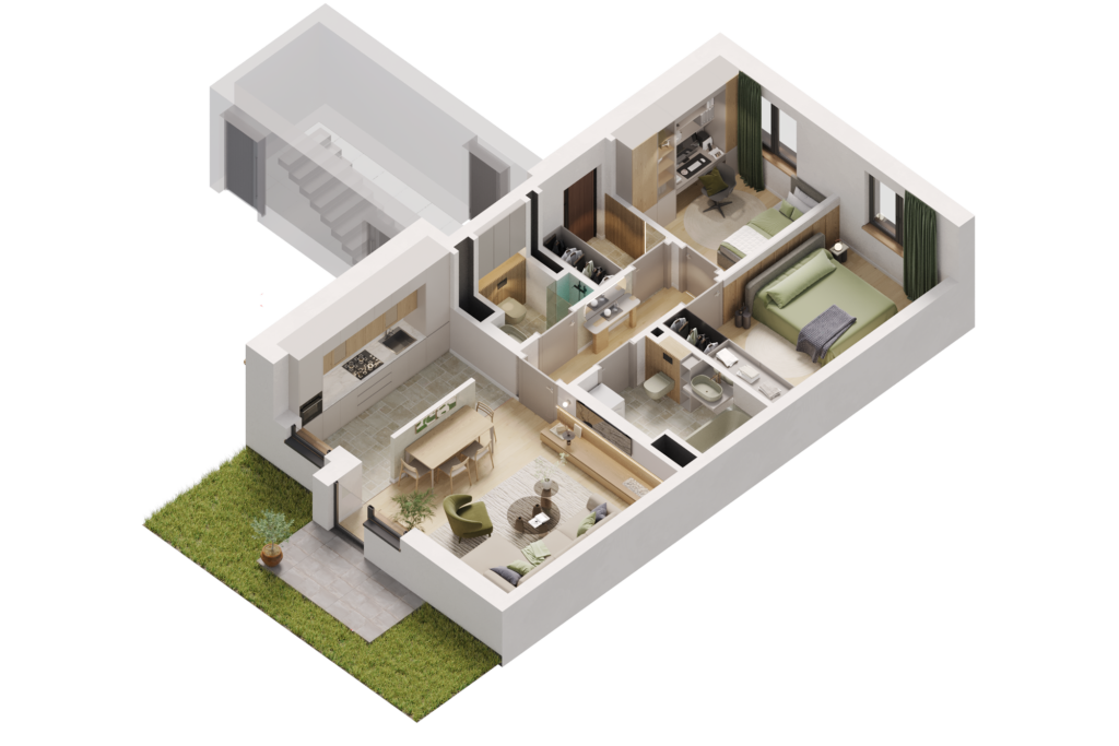 Dla każdego z 53 dwulokalowych budynków są przewidziane przynależne miejsca postojowe. Lokale są wyposażone w ogrzewanie gazowe, które daje możliwość instalacji kominka w salonie. To idealne miejsce dla rodzin szukających funkcjonalnych mieszkań z dostępem do zieleni i nowoczesnych udogodnień.